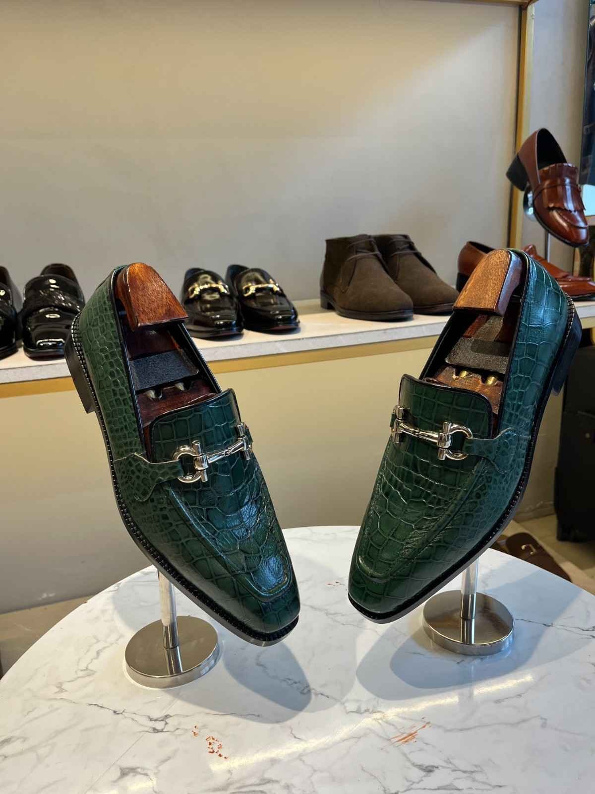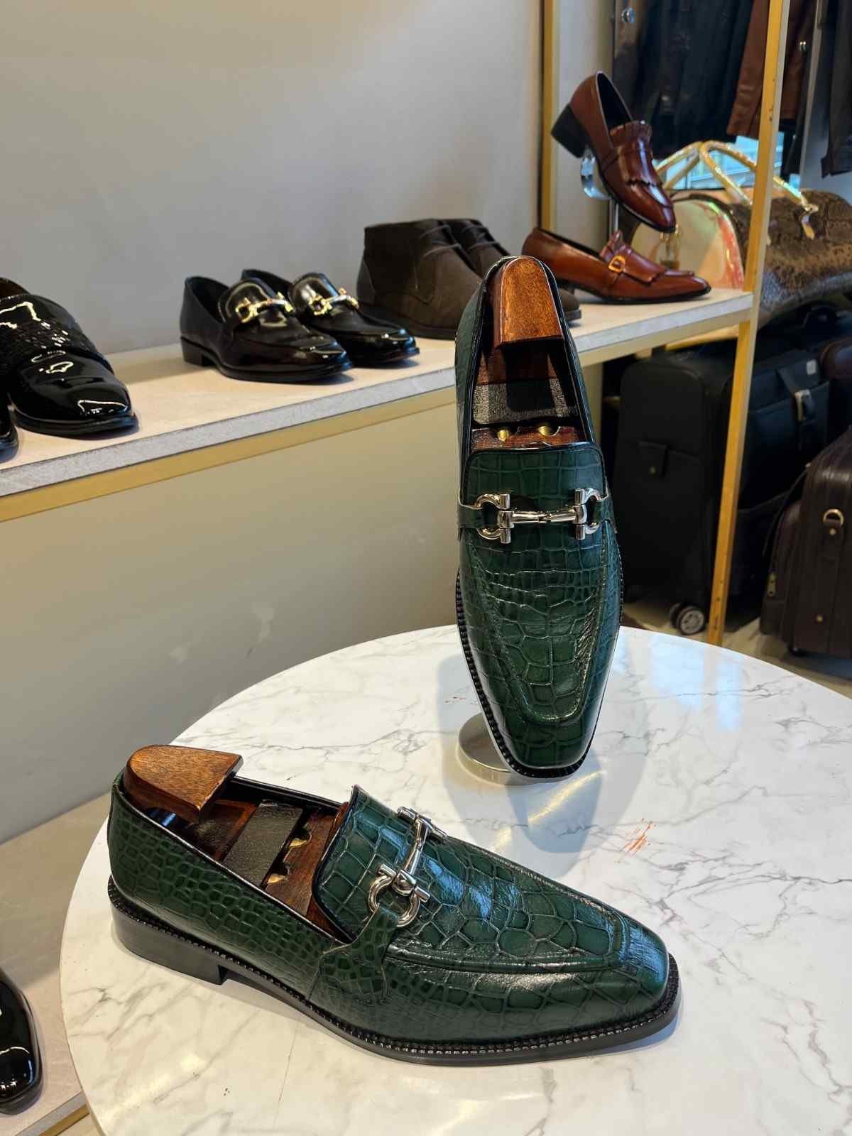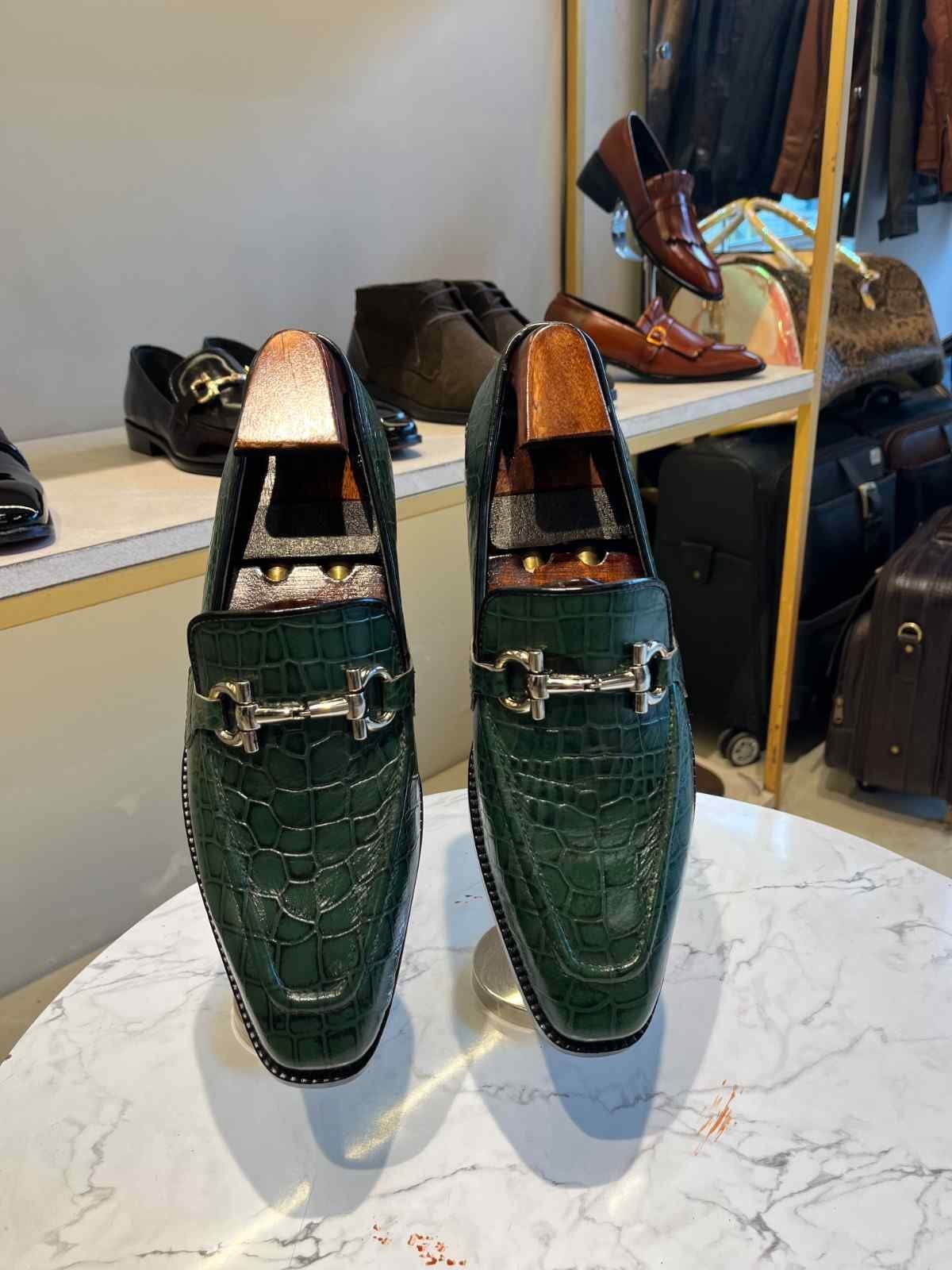 Green Crocodile Moccasins